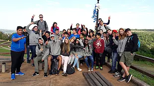 Im Juli 2017 waren 15 Schülerinnen und Schüler aus dem Jahrgang 10 der KSH und mit Frau Hoppmann zu einem 14-tägigen Arbeitseinsatz in San Miguel. Zum 10-jährigen Jubiläum der Schulpartnerschaft haben sie die erbauten Brücken der Freundschaft persönlich überquert und durch den ersten unmittelbaren Kontakt mit den Lernenden der Partnerschule die Freundschaft auf eine neue Ebene gestellt.