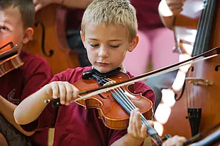 Für alle Schülerinnen und Schüler ist es immer eine sehr wertvolle und aufregende Zeit, in diesen Stunden die verschiedenen Instrumente zu erkunden und auszuprobieren. Weil sich diese Form des Musikunterrichts in den 4. Klassen bewährt hat, blicken wir darauf schon über zehn Jahre mit tollen Erfahrungen zurück – und arbeiten beständig daran, das Repertoire an Instrumenten professionell zu erhalten und weiter aufzustocken.